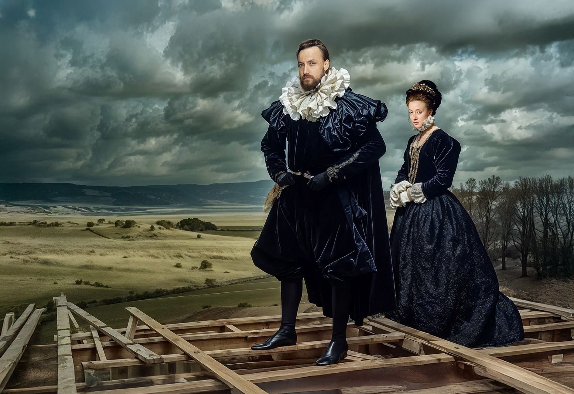 Felipe II, subido a un andamio, durante la construcción del monasterio