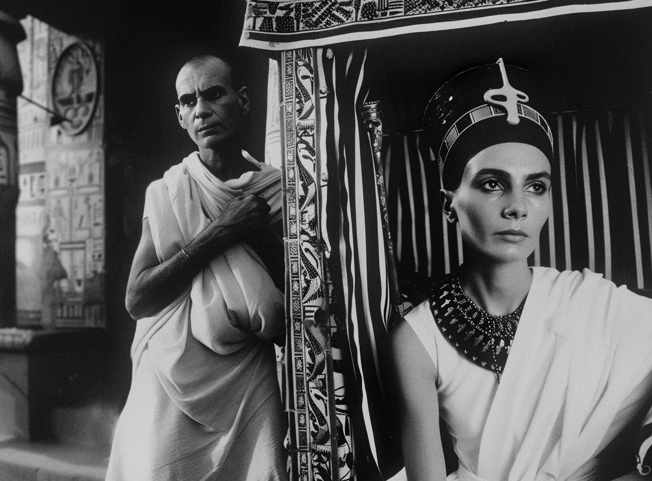 La reina Nefertiti junto a su criado, a las puertas de palacio